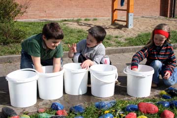 Die Erstklässler wuschen die Kieselsteine, besserten unansehnliche Stellen aus und legten neue Muster. |