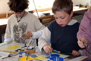 | Die Schüler der 3b bemalten Fliesen mit ihren Hand- und Fußabdrücken und gestalteten fantasievolle Ränder. | |