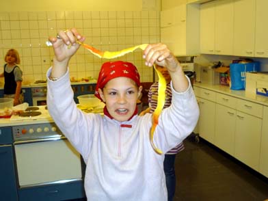 Lupe. Am Samstag waren dann die Eltern eingeladen, das neu erworbene Wissen ihrer Kinder zu würdigen. Selbstverständlich konnten an diesem Samstag auch die häuslichen Küchen kalt bleiben, denn die Kinder kochten für ihre Eltern – gesunde Speisen, das versteht sich von selbst! Natürlich ist eine solche Aktion
