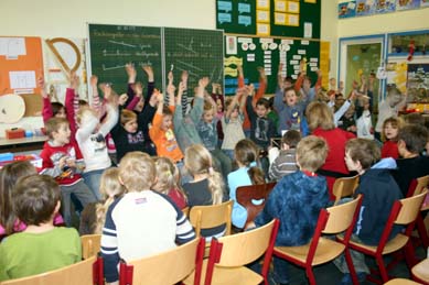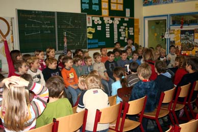 Frau Reichelt überlegte zusammen mit den Schülern, woran es liegt, dass die Markt Bibarter Kinder jedes Jahr besonders viele Zahnlöwenkarten sammeln Ein Grund dafür ist auf alle Fälle die gute Zusammenarbeit mit der ortsansässigen Zahnärztin, die auch regelmäßig die Schule besucht und Aufklärungsarbeit leistet. |
