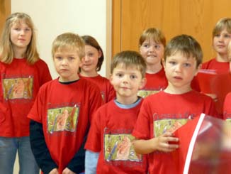 | Doch beim Singen dachte keiner mehr daran und die Kinder sangen unbeschwert auf. |