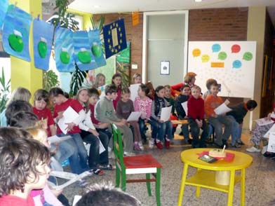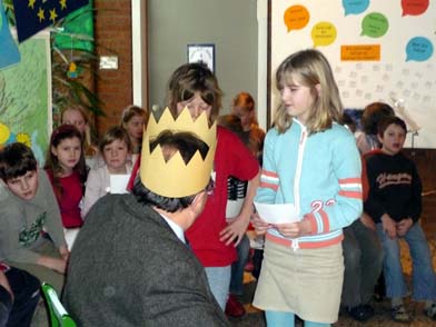 Kurz nach 8 Uhr warten alle Kinder gespannt auf das Eintreffen des Bürgermeisters. Hoffentlich kommt er bald! |