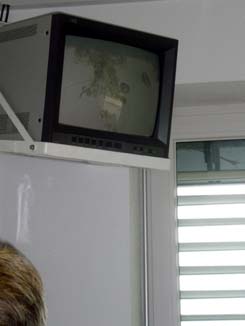 Nach der Führung durch den Außenbereich zeigten uns die Fachmänner noch das Büro und das Labor der Kläranlage. Besonders beeindruckt waren alle vom Blick durch das Mikroskop, übertragen auf einen Monitor. Ein einziger Schmutzwassertropfen entpuppte sich als Lebensraum für unzählige Bakterien und Kleinstlebewesen. Das Bärentierchen in Aktion zu erleben, war ein einmaliger Anblick! |