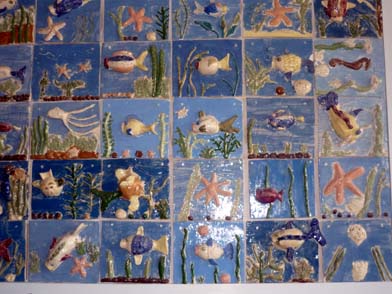 Eine Gemeinschaftsarbeit der besonderen Art ziert den mittleren Aufgang. |