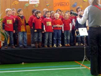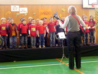 | Mit vier Liedern beeindruckten die Chorkinder die Zuschauer: "Wenn ein schöner Tag beginnt", " Alles Banane", "Der Cowboy Jim aus Texas" und "Der Löwe schläft heut´ Nacht". |