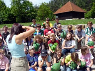 | Nach der schwierigsten Arbeit während der drei Tage, dem Bettenüberziehen, war eine erste Erkundung des Geländes angesagt. Dann ging es los: bei gutem Wetter konnten wir im Freien mit dem Basteln unserer Fantasietiere beginnen. Leider hatten nicht alle Kinder die nötige Geduld für diese Arbeit. |