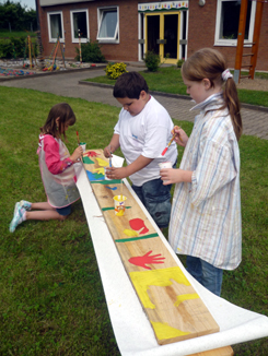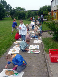 Die Erst- und Zweitklässler bemalten Fliesen mit Tieren oder Blumen. |
