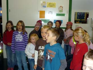 Spontan sangen viele Kinder aus den anderen Klassen mit und gratulierten danach Frau Gößwein ganz herzlich. |