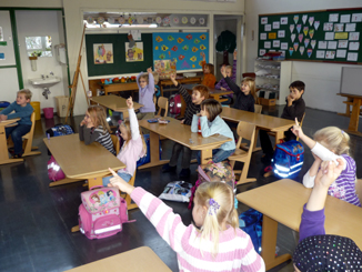 | Aufmerksam hörten die Kinder den Ausführungen zu und zeigten dabei große Begeisterung für die mitgebrachten Bücher. |