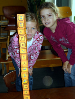 | Bei diesem Rechenspiel musste ein hoher Obelisk gebaut werden. |