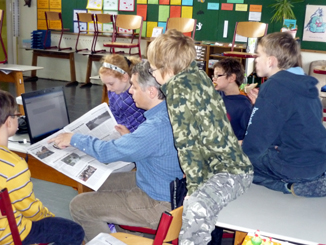 Die meisten Viertklässler aber machten Überstunden, denn Herr Reum von der Fränkischen Landeszeitung verfasste im Rahmen eines Zeitungsprojekts gemeinsam mit ihnen gleich einen Artikel über den Spieletag. |