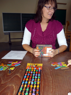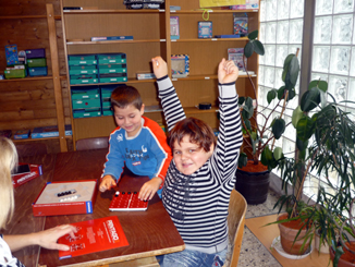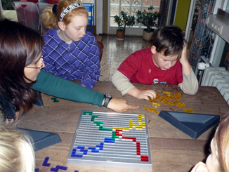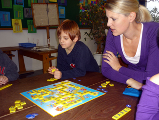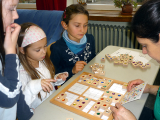 | Danach ging es in die Gruppen. Sudoky mit farbigen Edelsteinen war ein Spielangebot, bei dem die Kinder voll konzentriert sein mussten. |