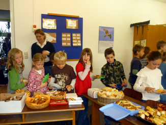 Nach der ersten Spielrunde war Zeit für eine Stärkung. Im Werkraum war ein kaltes Büfett aufgebaut, das alle nur vorstellbaren Köstlichkeiten bot. Danach war noch Zeit für eine Laufpause. Die Kinder konnten Frischluft tanken und gestärkt in die zweite Runde gehen. Die Zeit verging wie im Flug und um 12 Uhr durften die Kinder nach Hause gehen. |