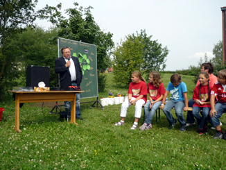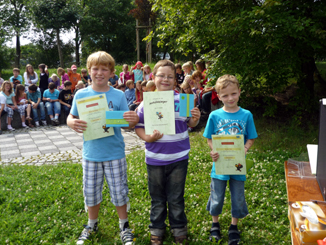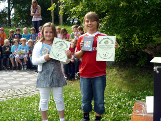 Nach Zeugnisverteilung und Gottesdienst traf sich wie jedes Jahr die Schulfamilie im grünen Klassenzimmer um besondere Leistungen einzelner Schüler zu würdigen und um die Viertklässler zu verabschieden.