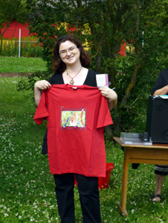 Dann ging es ans Abschied nehmen. Frau Jakob wurde als erstes verabschiedet, ab September wird sie an einer Nürnberger Schule unterrichten. Wir wünschen ihr dafür alles Gute. |
