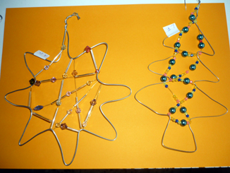 In der Knobelwerkstatt wurden mit Perlen verzierte Drahtsterne gebastelt. |