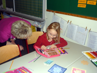 Auch in diesem Jahr luden wir die Kinder am Buß- und Bettag in die Schule ein. Diesmal stand adventliches Basteln auf dem Programm. Dank vieler Mütter, die mithalfen, konnte in fünf Gruppen gearbeitet werden. Fast alle Kinder erschienen freiwillig zu dieser Aktion. |