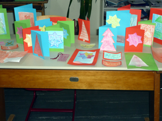 | Natürlich durften auch handgemalte Weihnachtskarten nicht fehlen. |