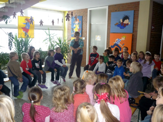 | Frau Reichelt bedankte sich ganz herzlich bei Frau Ohlmann und erklärte den Schülern die Funktionsweise der Uhren: mit einem roten Feld kann man anzeigen, wie viel Zeit die Kinder für eine Arbeit haben. Ab dann läuft die Uhr rückwärts, das rote Feld wird immer kleiner und ist nicht mehr zu sehen, wenn die Zeit abgelaufen ist. |