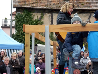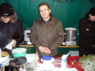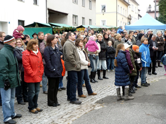 Am ersten Adventswochenende fand in Markt Bibart traditionell der Adventsmarkt statt. Der Schulchor unter der Leitung von Frau Henninger trug lustige und besinnliche Lieder zur Weihnachtszeit vor. Der Elternbeirat verkaufte Kränze, die Eltern und Lehrer wenige Tage vorher beim abendlichen "Kränzebinden" gebunden und geschmückt hatten. Bei kühlen Temperaturen lief auch das Geschäft mit Punsch und Waffeln sehr gut. |