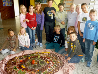 Viele Kinder hatten daheim fleißig gesammelt, und so war genügend Material für ein Naturbild zusammen gekommen. |