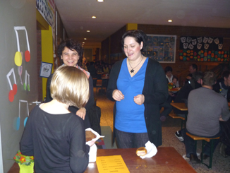 Nach der Vorführung konnten sich Musiker und Zuschauer stärken. Unser Schulflur verwandelte sich wieder einmal zu einem gemütlichen Treffpunkt, der Werkraum zu einem großen Büfett. |