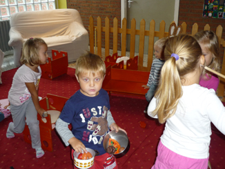 | Ein neuer Teppich, ein Zaun und Möbel aus dem Kindergarten - schon ist eine gemütliche Spielecke eingerichtet. Was es hier wohl Leckeres zum Essen gibt? |