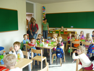 Schon ab 2. September war viel Kinderlachen und Kinderlärm in der Schule zu hören. Warum das? Die Hasengruppe des Kindergartens zieht für einige Monate bei uns im Gebäude ein! Umbaumaßnahmen im Kindergarten führten zu dieser Auslagerung. Es dauerte nicht lange und schon fühlten sich die 20 Kinder in ihrem neuen Bereich sichtlich wohl. Inzwischen sind auch die Schüler wieder am Arbeiten und wir freuen uns auf die mögliche Zusammenarbeit zwischen Schul- und Kindergartenkindern. Erste gemeinsame Lese- und Kunstprojekte sind schon angedacht. |