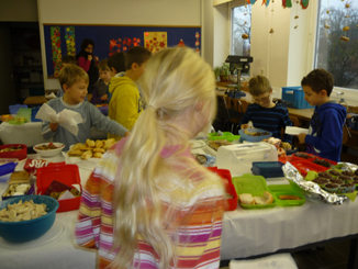 Um nicht zu viel Hektik in die Vorweihnachtszeit zu bringen, sollte in diesem Jahr wieder nur eine kleine gemeinsame Weihnachtsfeier stattfinden. Jede Klasse oder Gruppe bereitete einen kurzen Beitrag vor. Vor der Aufführung, zu der die Elternbeiräte eingeladen waren, standen noch ein köstliches Weihnachtsbüfett und eine extra lange Pause auf dem Programm. |