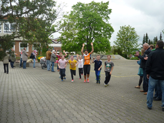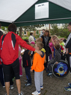 Etwas ganz Besonderes an diesem Tag war auch das harmonische Miteinander. Einige Lehrer und einige Mütter drehten die ganze Zeit zusammen mit den Kindern ihre Runden, andere Elternteile fungierten als Streckenposten, standen an den Versorgungsstationen oder sorgten für Kaffee und Kuchen. Kleinere Geschwister und so manche Mütter und Väter absolvierten einige Runden zusammen mit ihren Kindern. Natürlich waren auch die vielen Zuschauer und „Anfeuerer“ an diesem Tag ganz wichtig. Danke an alle, die uns an diesem Tag auf so vielfältige Weise unterstützt haben!