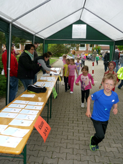 Die Grundschule Markt Bibart veranstaltete am 2. Mai, dem Brückentag, einen großen UNICEF- Lauf. Die Schüler suchten sich im Vorfeld Sponsoren, die pro gelaufener Runde einen bestimmten Betrag spenden wollten. Maximal 20 Runden zu ca. 500 m konnten in 90 Minuten gelaufen werden. Bei den Laufübungen im Vorfeld zeigten die Kinder schon ihre Lauffreude, doch beim tatsächlichen Lauf wuchsen viele über sich hinaus. So schaffte etwa ein Drittel aller Schüler alle 20 Runden, mit weniger als acht Runden gab sich keiner geschlagen. Natürlich fiel das Laufen unter dem Beifall der vielen Zuschauer auch viel leichter als beim Training. Neben den tollen sportlichen Leistungen soll auch das „erlaufene“ Geld nicht unerwähnt bleiben. So kann eine beträchtliche Summe dafür verwendet werden, anderen Kinder mit einer Trinkwasserversorgung und dem Bau von Latrinen zu helfen.