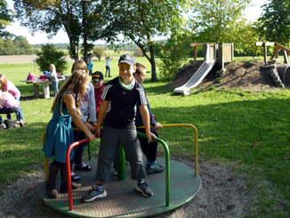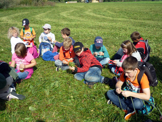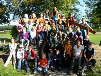 Am 24. September unternahmen die zwei Kombiklassen ihren Herbstwandertagen. Als erstes Ziel wurde der Spielplatz in Altmannshausen angesteuert. Bei herrlichstem Sonnenschein vergnügten sich die Kinder lange Zeit mit ihren Freunden auf dem tollen Gelände. Auf dem Heimweg waren die Kinder, passend zur Klassenlektüre, als Spurensucher unterwegs. Entlang der Bibart wurde nach Biberspuren Ausschau gehalten. Schon bald wurden die Kinder fündig: sie entdeckten angenagte Bäume, eine verlassene Biberburg sowie ein Damm, der die Bibart aufstaute. |
